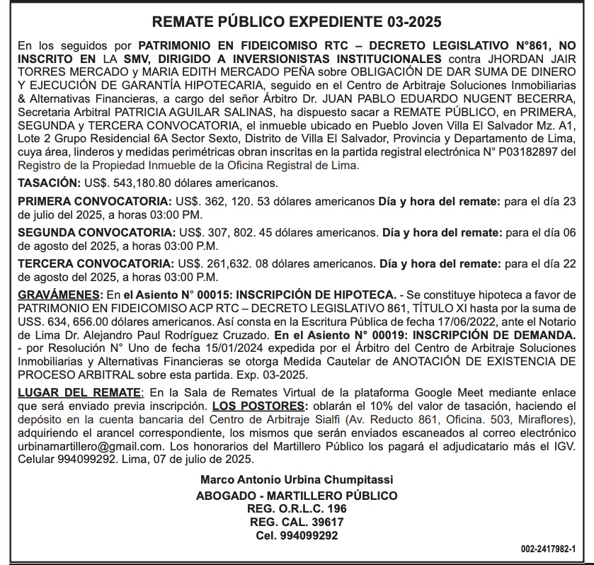 Exp. 03-2025 // Inmueble en Villa El Salvador