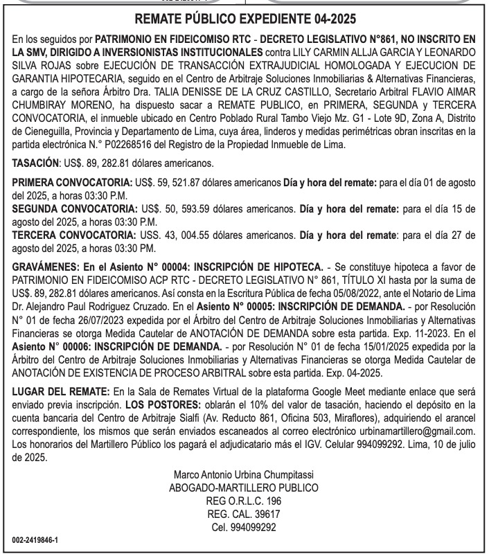 Exp. 04-2025 // Inmueble en Cieneguilla