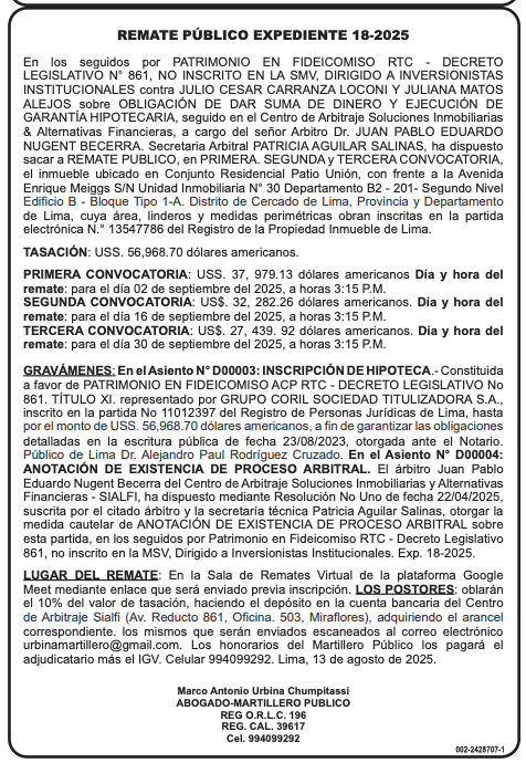 Exp. 18- 2025// Inmueble en el Cercado de Lima